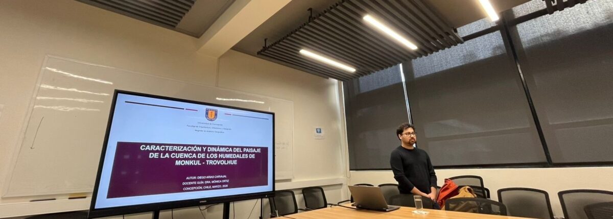 El pasado lunes 30 de marzo 2026, Diego Arias defendió con éxito su tesis para optar al grado de Magíster en Análisis Geográfico en la Universidad de Concepción. Su investigación, titulada “Caracterización y dinámica del paisaje de la cuenca de los humedales Monkul – Trovolhue”, aborda el estudio de estos ecosistemas desde una perspectiva territorial y ambiental, aportando al conocimiento de su evolución y relevancia.